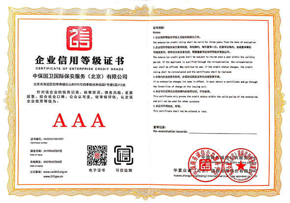 企業(yè)信用等級(jí)證書AAA級(jí)